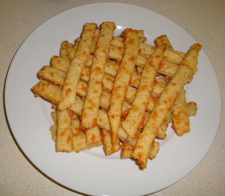 (Sorry if I told this story before but I guess you’ll read it again :D) A few weeks ago my husband and I drove past somewhere and what we’d smelt reminded us of cheese straws, since then we’ve had a craving for them. I’ve always been the “chef’s assistant” to my mum when she baked but never paid close attention to measurements – I’m really thankful for Skype today. I’d bought the ingredients earlier this week and 2 more today to surprise my husband this evening with this treat :). I can now put Cheese Straws under my belt with Apple Crumble for my baked goods :).