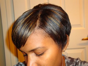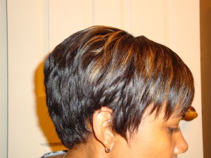I’d always had long hair until 2005 when I really wanted a change after graduation and I cut it into a bob, then 3 months later I cut it into a VERY short bob where the back was shaved. I grew it until July 2009 then I said, I want a change again to go with my new life – getting married and moving overseas. Since then I’ve been growing and cutting periodically. I made it to a shoulder bob last Summer then I cut it again in November. I had my pixie cut done in July. I’ve ALWAYS wanted this cut and I figured why not for Summer! So, in a last minute decision (literally in the chair just before the blow dry), I told her cut it! And this was the result!!
