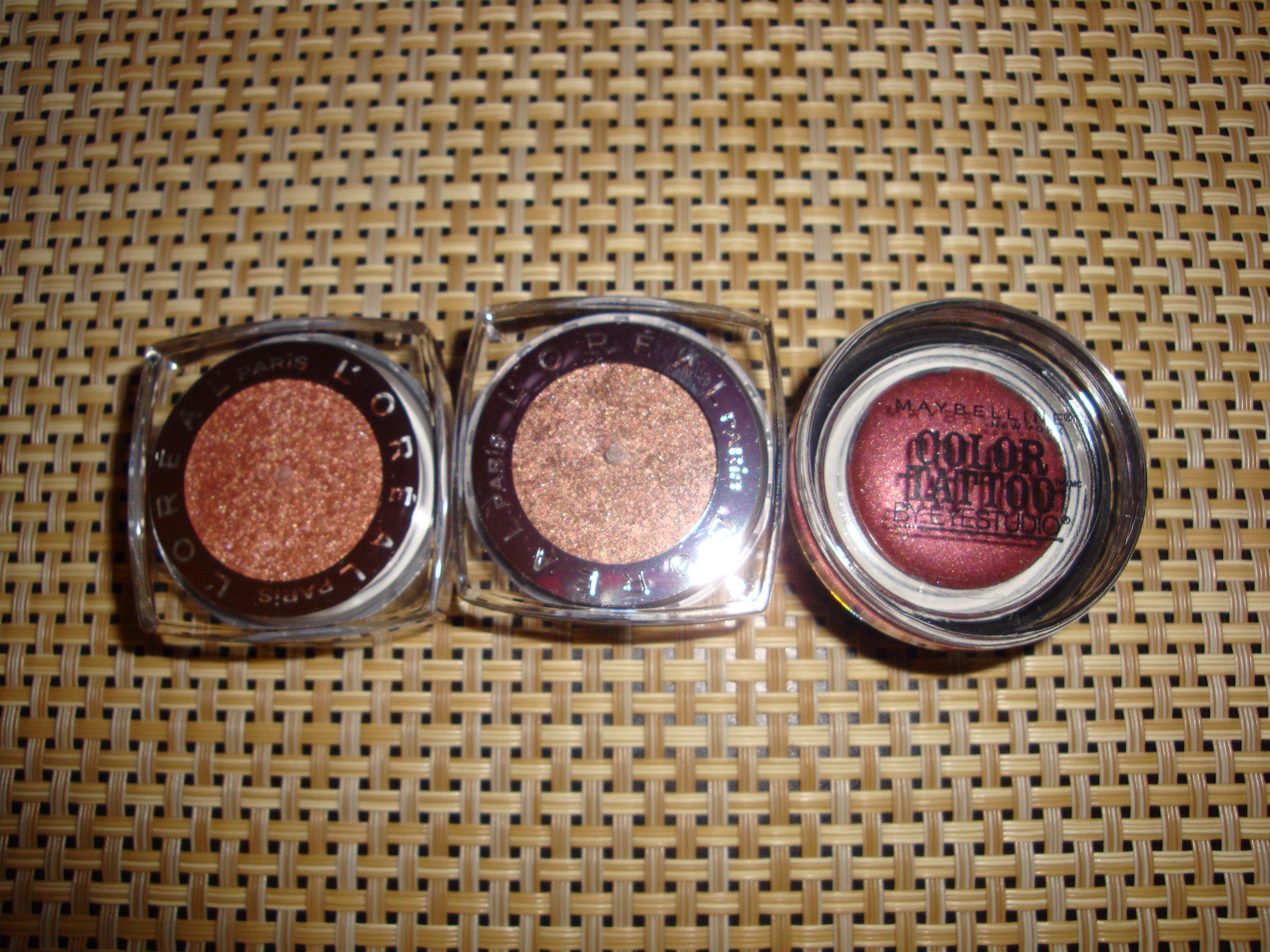 Eyeshadow (L ->R): L’oréal Infallible “Amber Rush (892)” and “Bronzed Taupe (890)”, Maybelline Color Tattoo by Eyestudio “Pomergranate Punk (30)”. The two eyeshadows by L’oréal are quite interesting. If you haven’t noticed by now, I LOVE neutral/natural colours when it comes to make-up – the “barely there” look. Those eyeshadows have a little disc on the inside that compresses the powder which makes it not so loose and also great for travelling. The Maybelline color is more creamy in texture.
